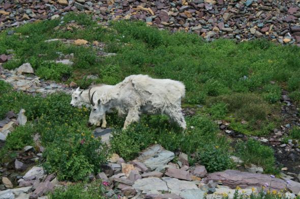 Okay, goats are probably not the first thing people think of when they think of Glacier National Park in Montana. But mountain goats inhabit that part of the Rocky Mountains, and in my experience, they have been ubiquitous around the 1.5 mile trail to Hidden Lake. Which isn’t really hidden. Right?