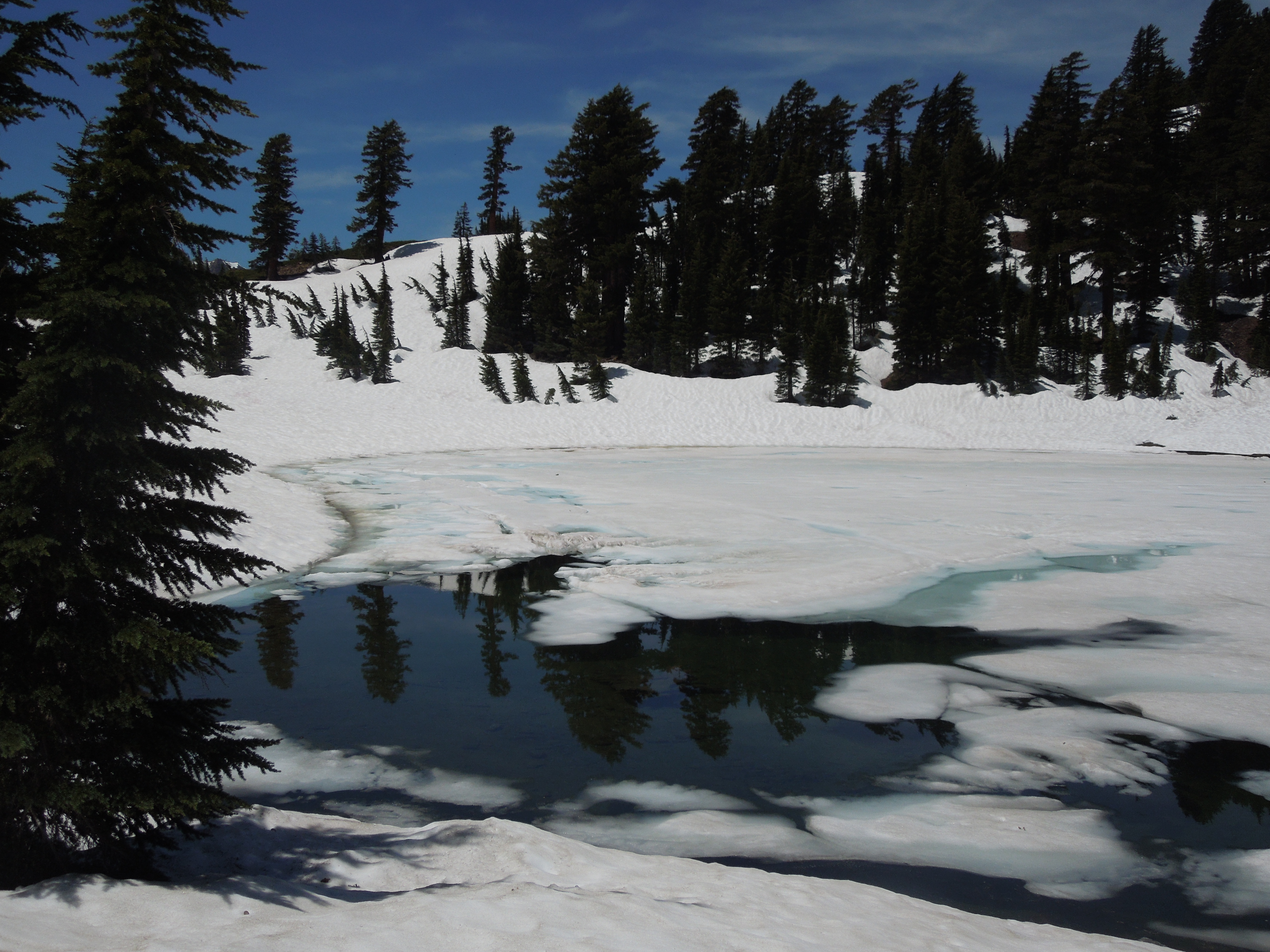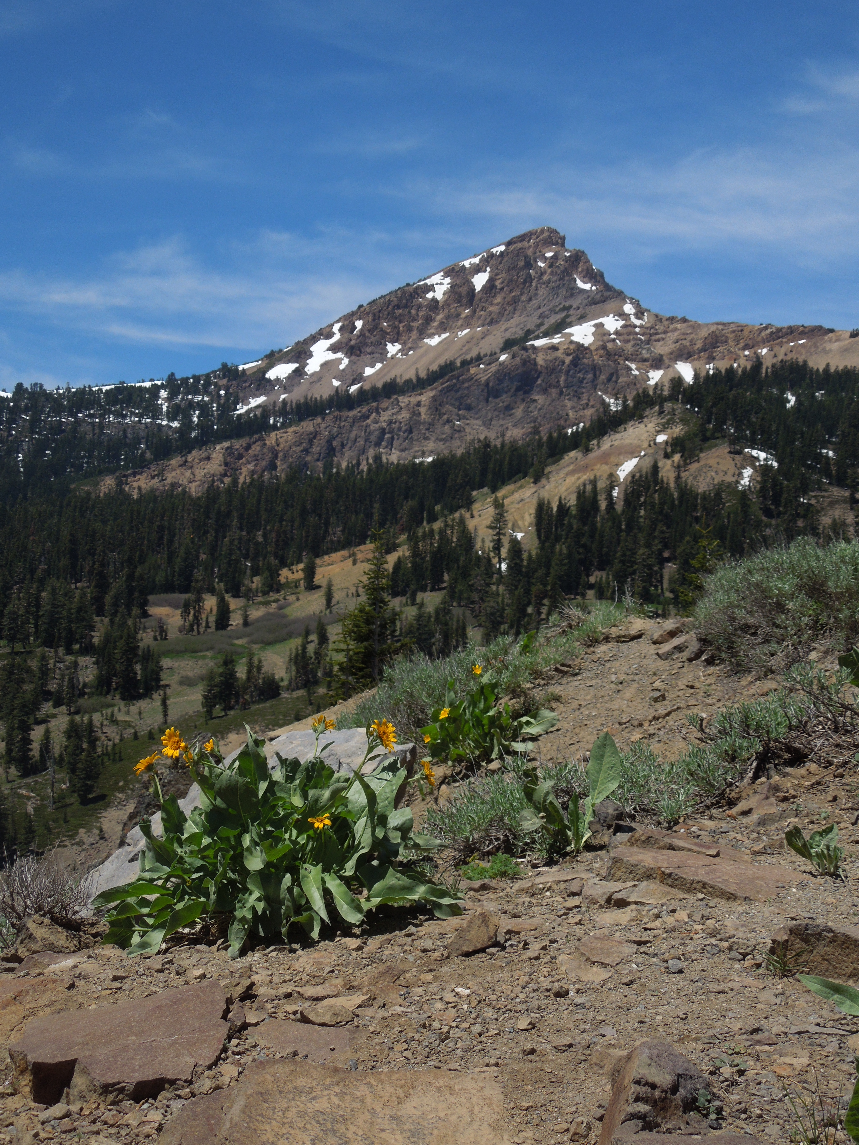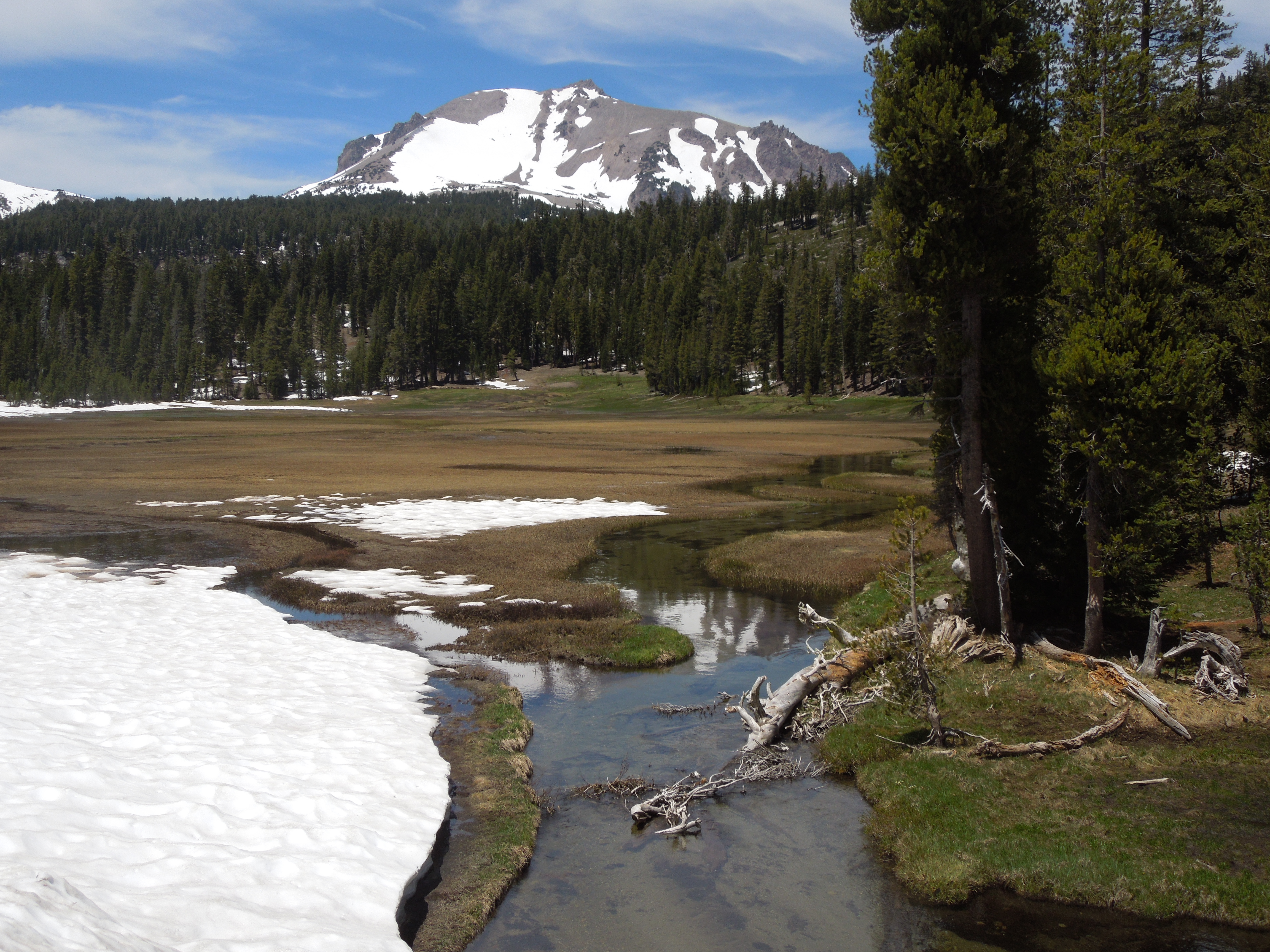 There was not much snow in the Park, even at the higher elevations, although some trailheads were buried by plowed drifts, and there was yet enough white stuff on Lassen Peak to obscure much of the trail to the top.