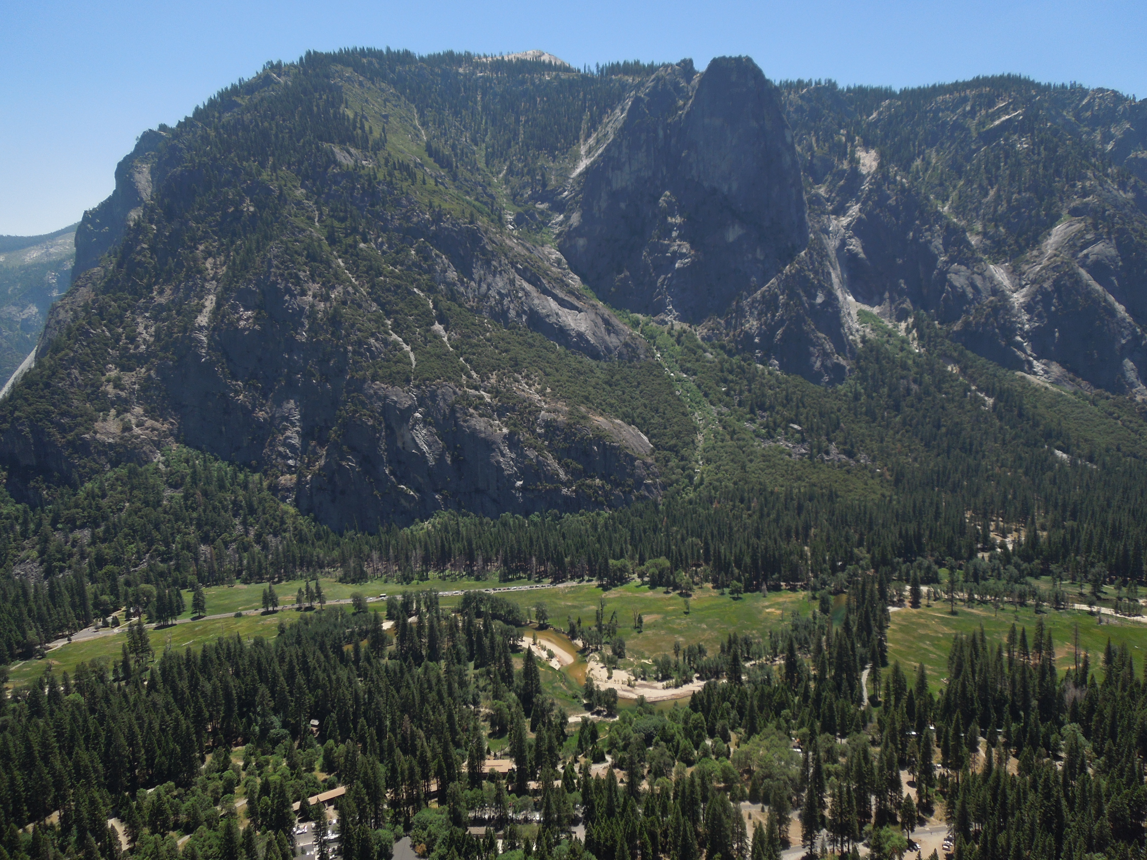 Eventually we reach the end of the 60 switchbacks at Columbia Rock, and the promised panoramic views of the Valley and the Merced River below, Half Dome, the mountains in the back country beyond, and Glacier Point across the way make us forget momentarily how hard we had to work for them! They cry out to be photographed, and I oblige.