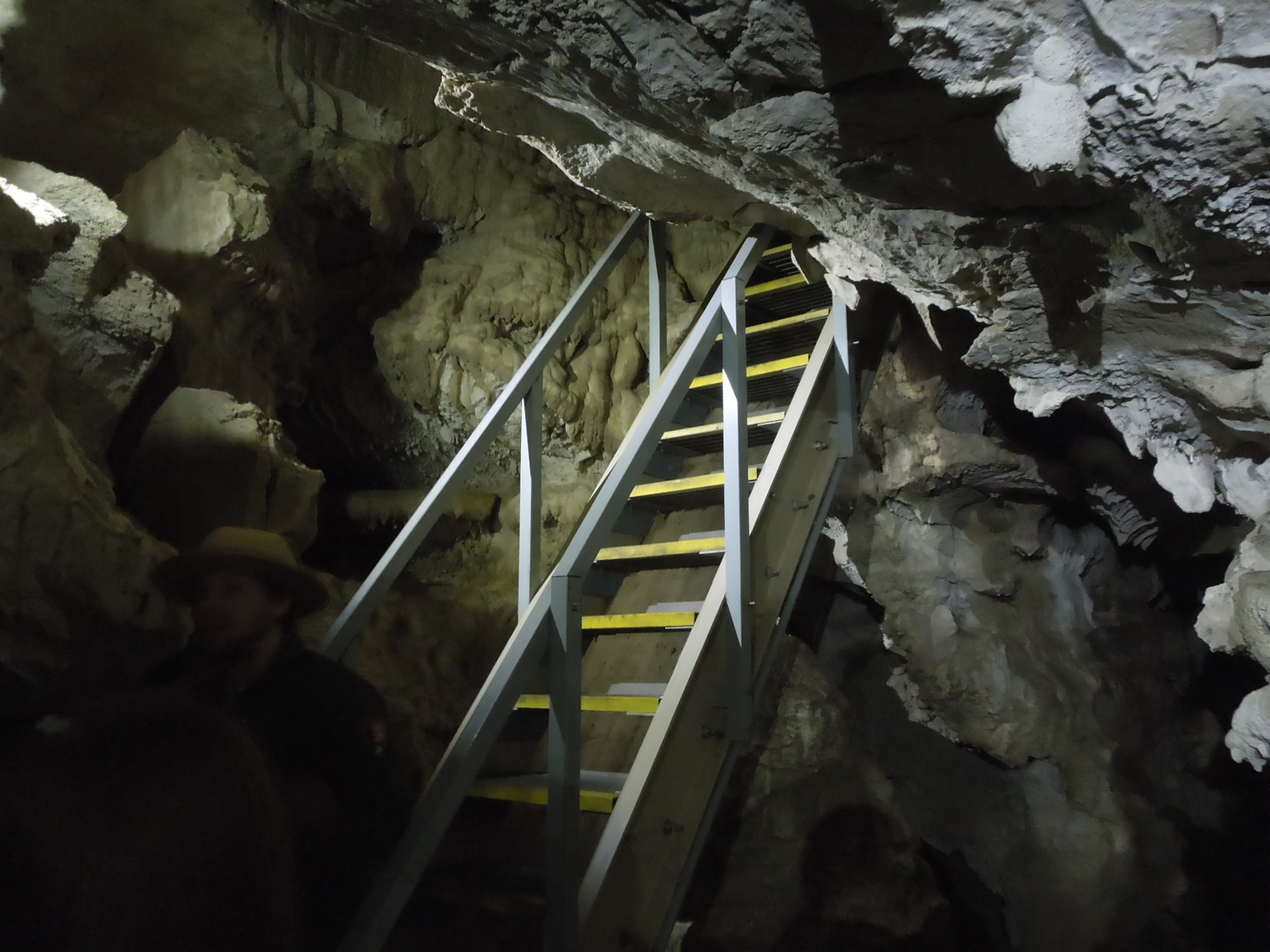 A tour of the cave takes about 90 minutes, and you sign up at the Visitor Center. The hike is “moderately strenuous,” requiring ascent and descent of wet stone steps and metal ladders (including one spiral), and bending and twisting while walking under low ceilings on narrow paths.