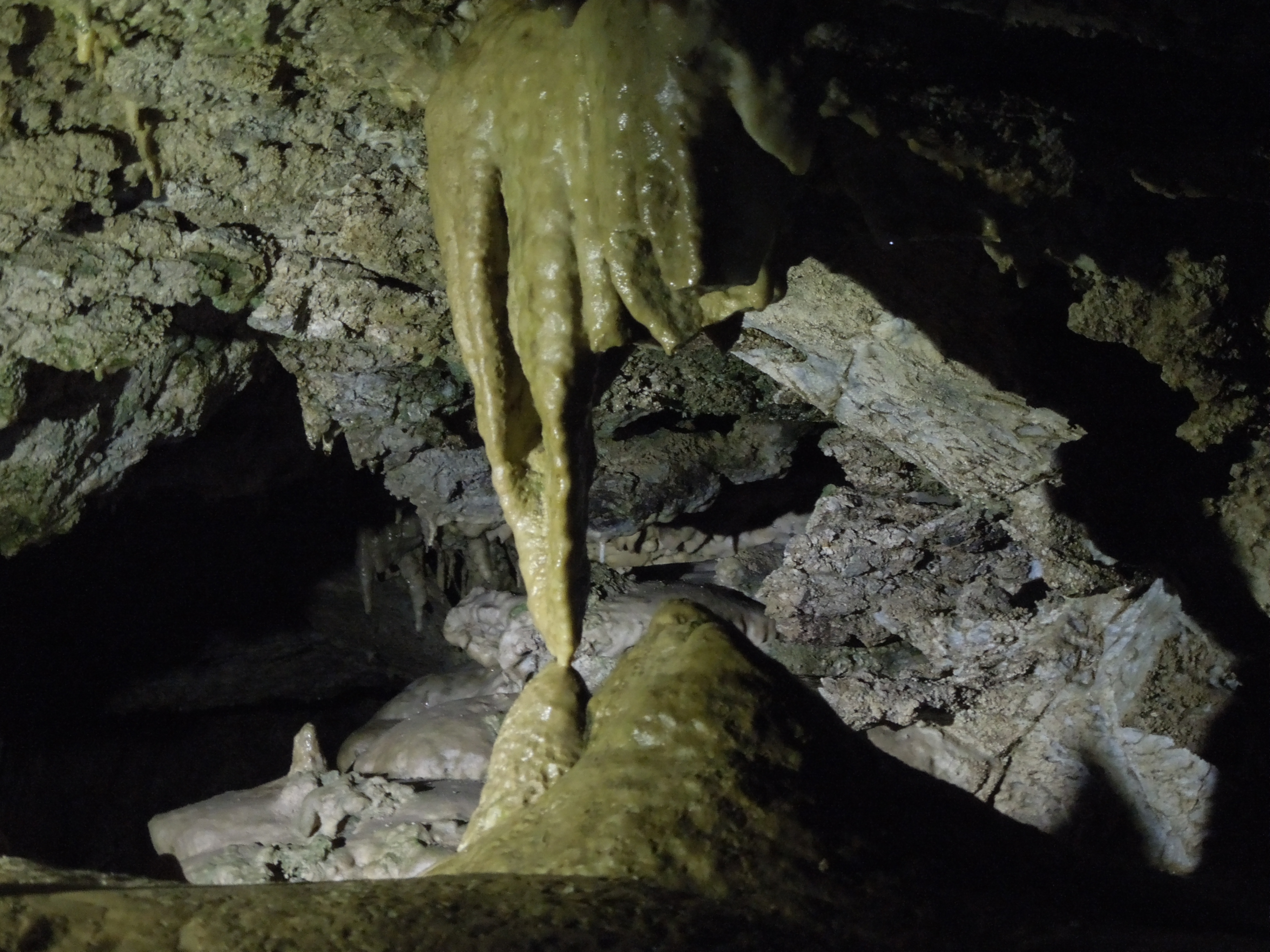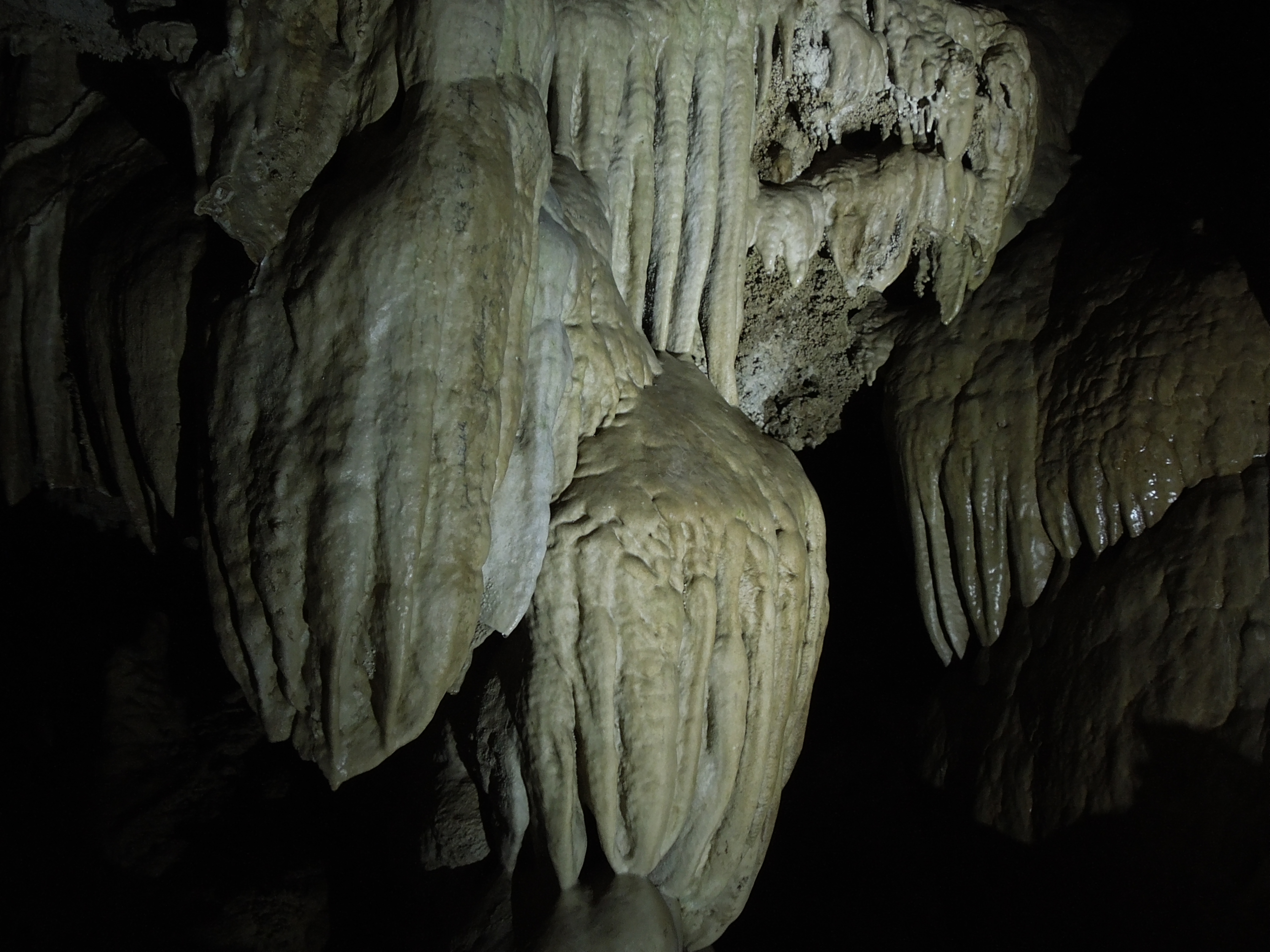 Inside the cave the temperature is a constant 44 degrees Fahrenheit. On the day we visited last month the air temperature outside was in the 80’s, so a leap of faith was required to bundle up as if in preparation for spending an hour and a half in a refrigerator, but doing so allowed us to focus on the cave instead of frigid body parts. Our knowledgeable tour guide, Ranger Cedar, engaged and entertained our group with stories about the cave’s history, features, geology and inhabitants (living and fossilized).