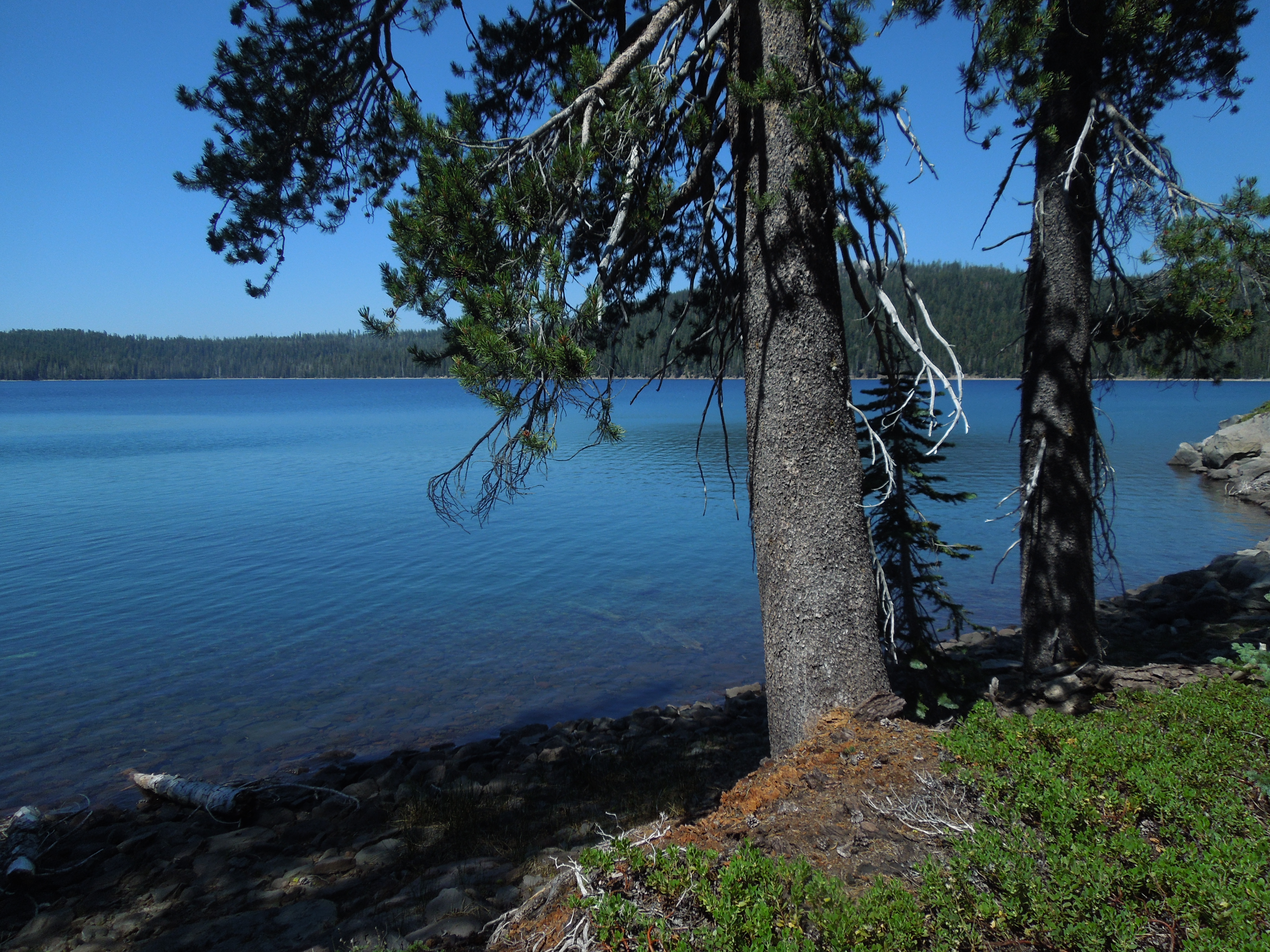 When you reach the trail junction west of Juniper Lake, the hike continues on a mostly level 1.8 miles back to the campground, along the entire south shore of the beautiful, blue lake. Swimming is allowed!