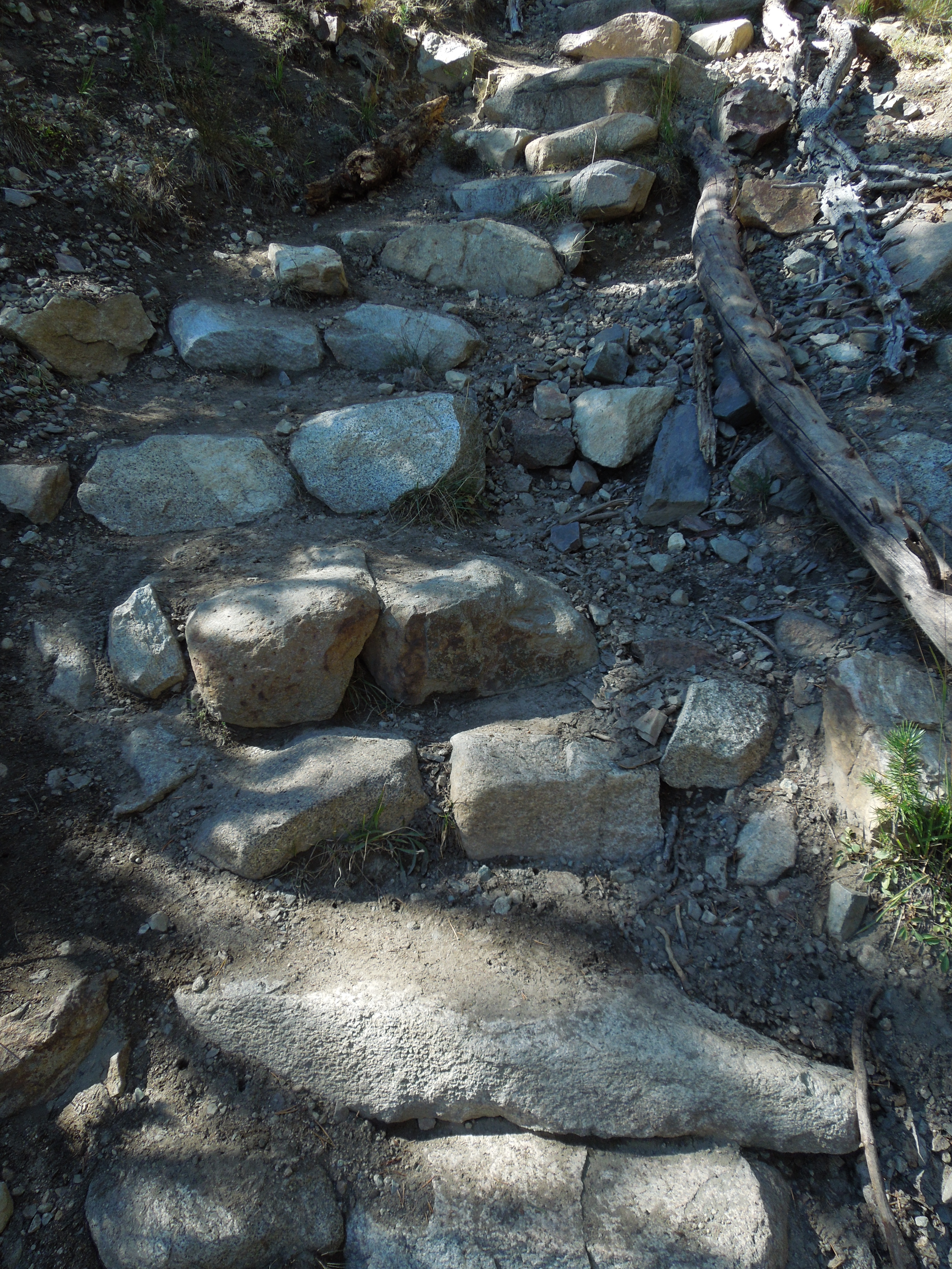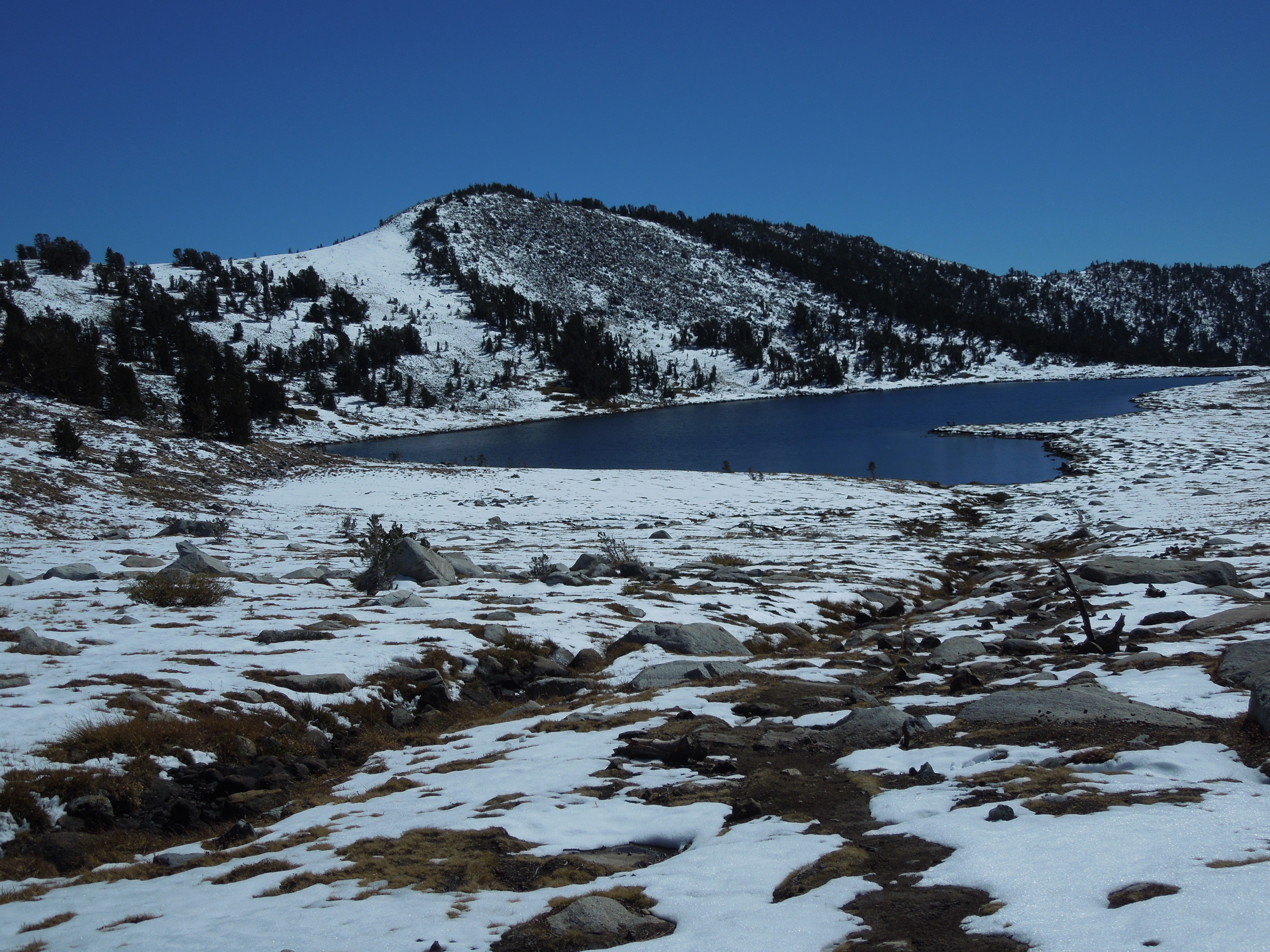 At that point we lost the trail, but we could see the Lake below us and the trail continuing around its shore, so we made our way down the slope, eventually coming upon the trail and following it the rest of the way.