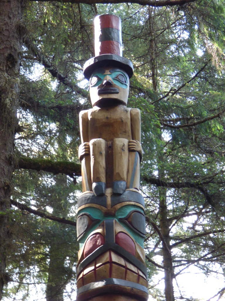 If you ever find yourself in Sitka, Alaska – unlikely, given its remoteness, unless it is your destination – you won’t want to miss the Sitka National Historical Park. A lovely network of shaded, level trails takes you through forests of hemlock and spruce trees, along the banks of the Indian River and the shores of Sitka Sound, where you are likely to see bald eagles – almost as ubiquitous in Sitka as seagulls in San Francisco – and you are certain to see totem poles.
